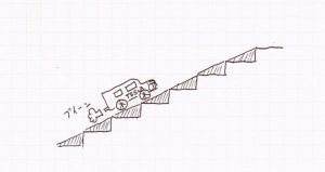 ラゾーナと直結する駅の階段に、ハメ込む三角形のパーツで坂道を作り上った。